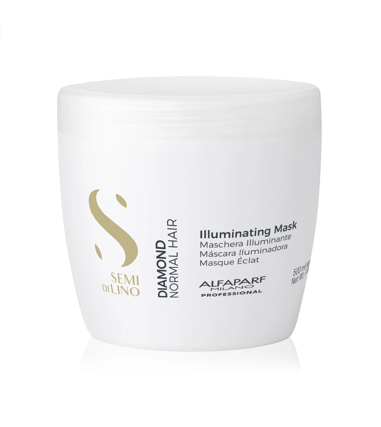 Masca de stralucire Alfaparf Milano Semi di Lino Diamond Illuminating revigoreaza parul obosit si fara vlaga. Ii reda energia pierduta, asigurandu-i o stralucire fermecatoare si o textura moale si catifelata, fara a-l împovara. Revitalizeaza intens fibra parului si îi confera o stralucire extrema. Un par cu 37 % mai stralucitor, fiind testata in laborator pe par decolorat. Protejează parul impotriva radiatiilor UV si previne estomparea culorii. Reda cuticulelor parului energia pierduta si nu impovareaza parul.